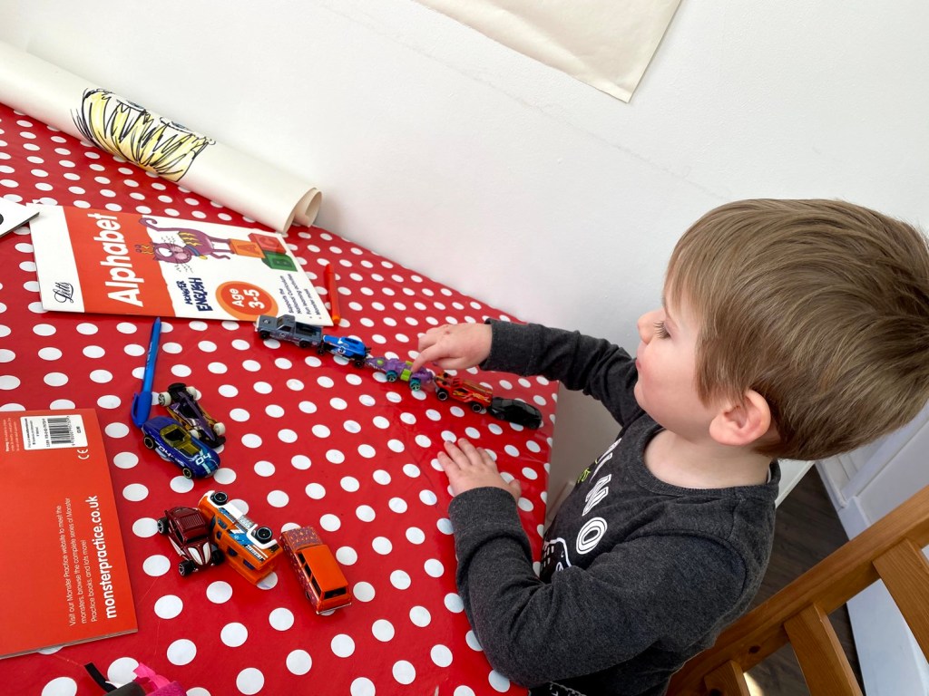 When James wasn’t busy crashing the cars he did some brilliant counting with them. A much more wholesome use of cars compared to what his uncle Chris used to do with them (smash them up with a sledge hammer!).