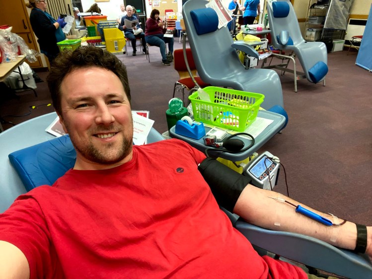 While the children finished dinner and got ready for bed, I crept out of the house to go and donate blood. I was so glad that the NHS are continuing to run this vital service, but it was very odd compared to a normal donation. Having arrived I was asked to stand behind a taped line on the floor, scrub my hands with a massive antibacterial wipe and answer some quickfire questions. It reminded me a bit of the prison scene in A Clockwork Orange (without the nakedness). Once I was in the process was broadly the same as normal apart from the waiting area seats being further apart. Life goes on!
