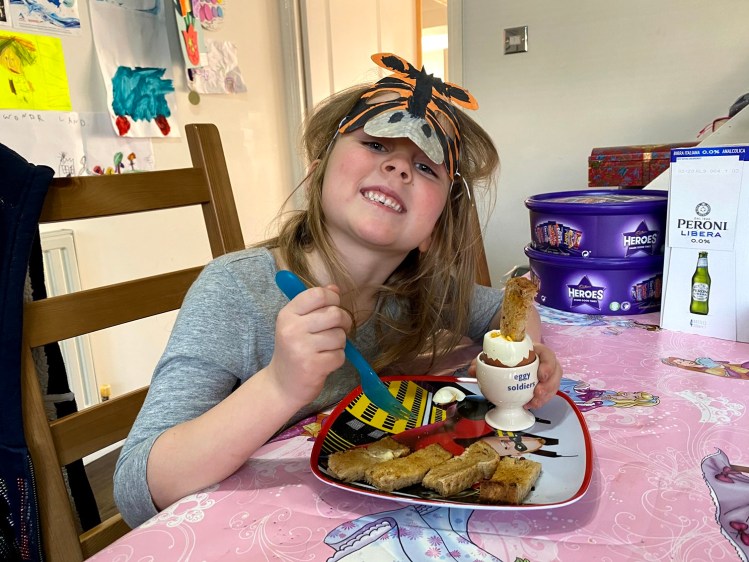 The day started with an easy yet exciting breakfast – dippy eggs and soldiers. What a treat! I’ve still yet to master the “perfectly runny yolk yet firm white” boiled egg, bit it was good enough and the kids gobbled it all up (by which I mean demanded extra eggs and toast but then left a lot uneaten – it’s still a success though).