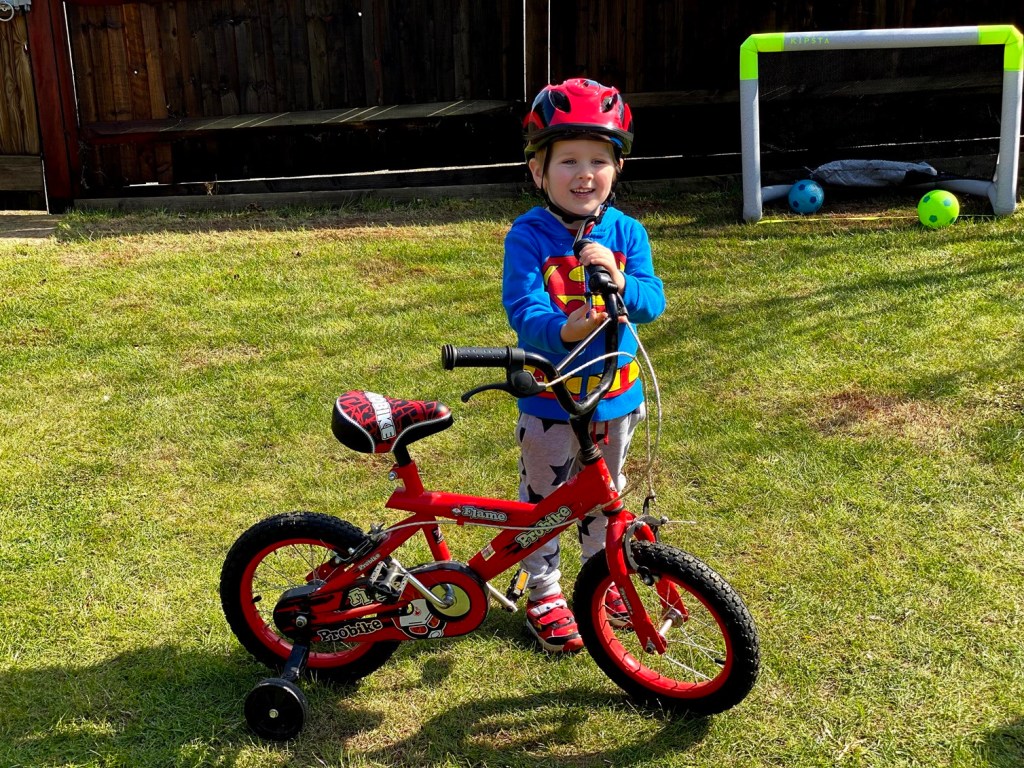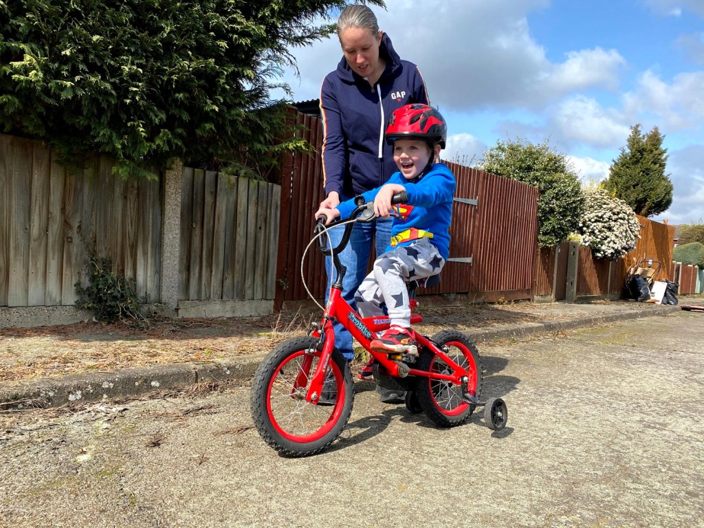 We have a carpark behind our garden that proved to be the perfect place for both kids to have their first adventure on a bike. There was some confusion about what “push the pedals” meant and, I have to admit, quite a lot of swearing under my breath and I cajoled Genevieve to “push, push, push” rather than trying to ring her damn bell. But, after three journeys to the end of the carpark and back, both kids had grasped what they needed to do and were actively propelling their bikes forward. Watch this space – they’ll be popping wheelies before you know it!