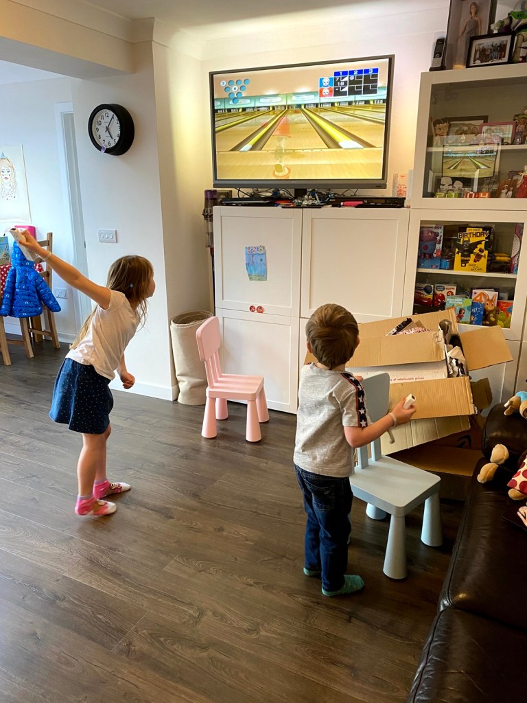 Their favourite game is Swordplay in Wii Sports Resort, but they get far too excited beating up their opponents and I was looking for a bit of a calmer start to the day. In the end I opted for bowling – it’s a classic and they can both play at the same time. Once we’d got over the initial strops when they missed the pins and the inevitable moans of “I can’t do it”, they quickly got stuck in to the game. Genevieve did particularly well scoring an impressive 131 that was boosted by a cheeky double strike. James struggled with the strikes but showed a remarkable ability to mop up the remaining pins – he was the king of spares!