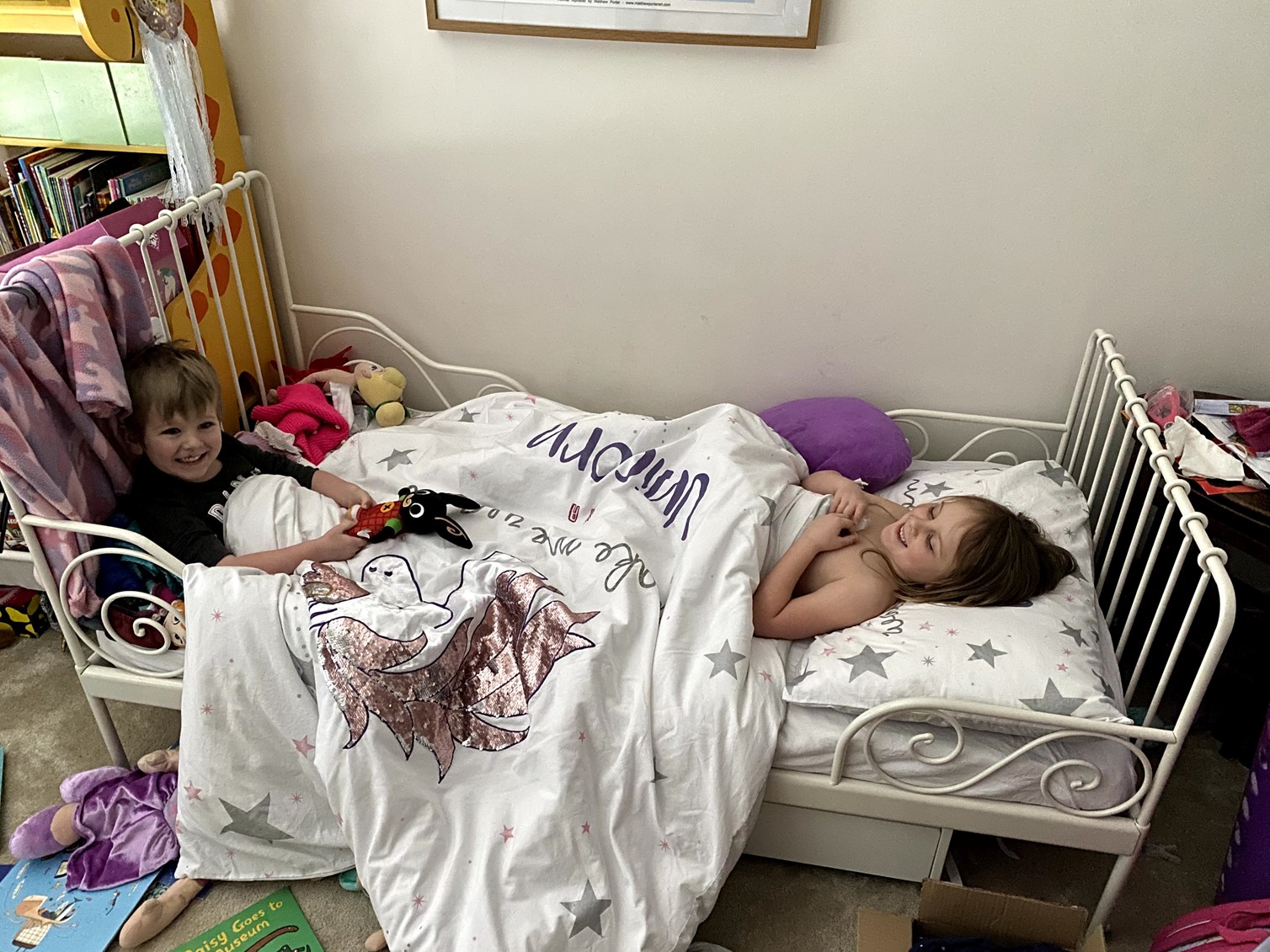 In an uncharacteristic display of sibling love and cuteness, the children got in to bed together before we headed downstairs for breakfast. It was short-lived though as they quickly began poking and kicking each other, but it was very nice while it lasted. It also proved to us that a bunk bed is definitely not on the cards for the future!