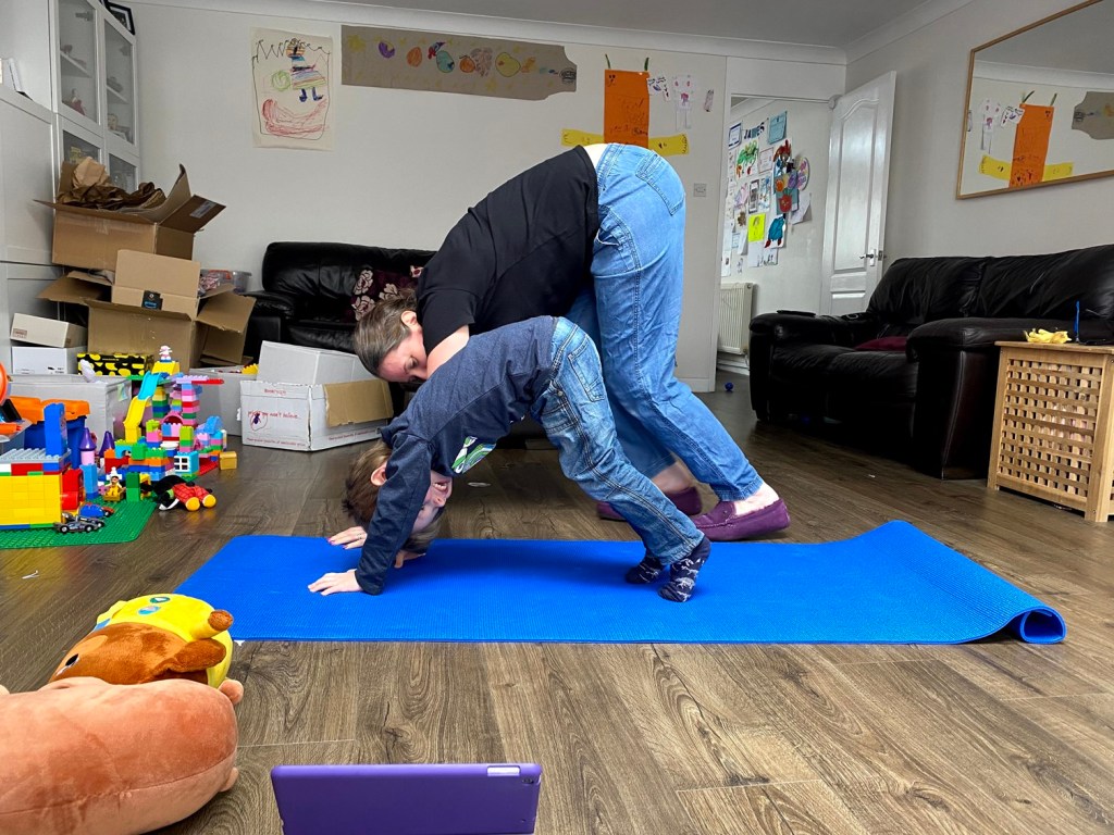 Today was yoga day for James’s preschool group and so we dutifully logged into zoom and started the “children’s yoga class”. I was not expecting to have to complete downward dog over James or having to complete the warrior pose whilst balancing James on my knee and then lowering him backwards. He loved it. It was waaay more of a workout than I was expecting. Lol.