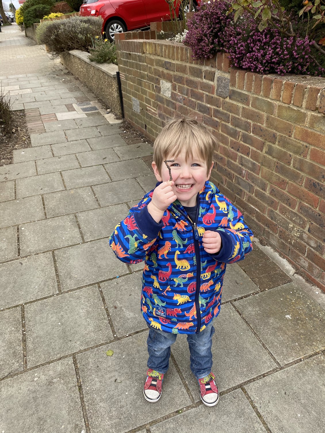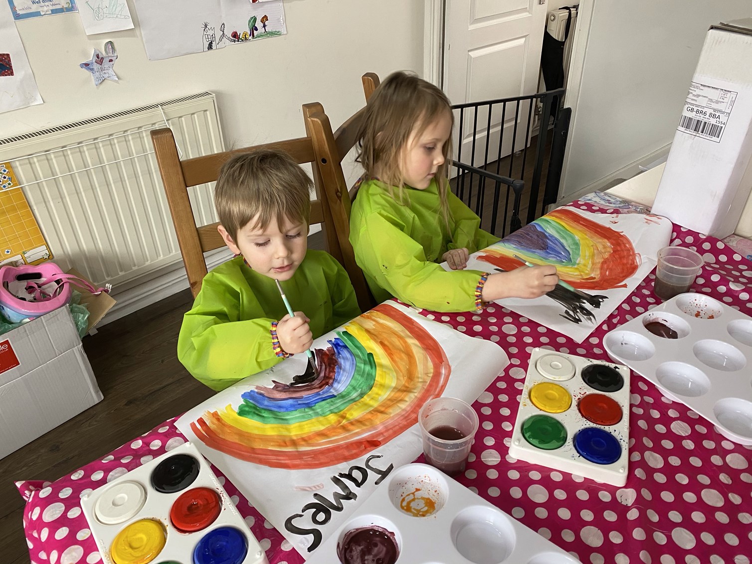 After breakfast we continued with a spot of home learning before we went on our adventure. Today’s quest was deliver rainbow drawings to the lovely neighbour opposite and to collect bread from the bakery – 20min walk away. It all started so well with a spot the rainbow challenge. Things swiftly took an interesting turn when Genevieve decided she was going to add extras to her counting for ones she had seen on previous days whereas James and I were doing ones we had actually seen. Arguments ensued. Still, we made it to the bread shop and retrieved our delicious farmhouse loaf!
