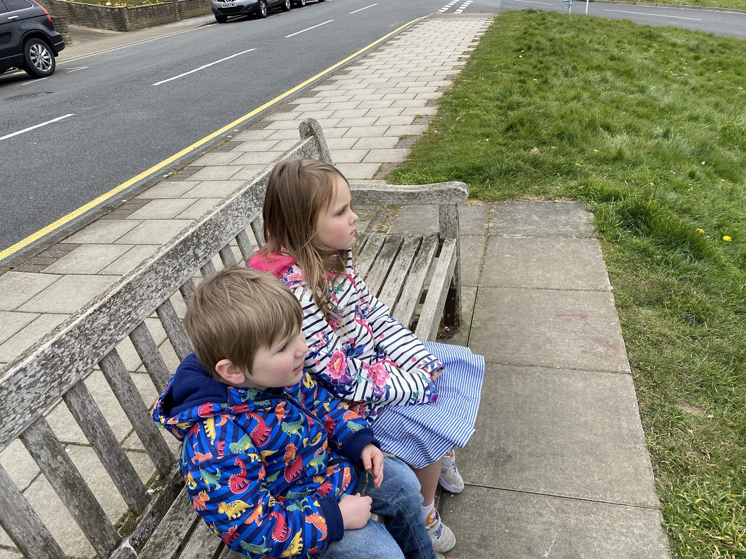 The way home was not any less eventful with the exciting discovery by James of a stick “shaped just like a number 7”! Cue Genevieve having a strop because she didn’t have one. We managed a temporary truce when we found a second one “shaped like a number 1”! Alas this was short lived as nothing measured up to the number 7 stick (which was then brought home and is still residing in the house somewhere). We did manage a moment of calm whilst we sat on the bench and looked at “the whole world”. There was a quiet spot of reflection before the moaning about how tired they both were started again.