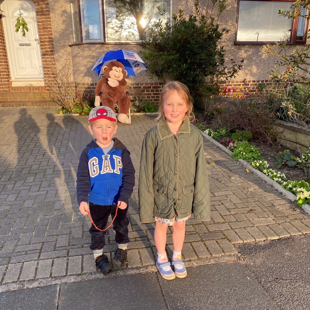 After dinner we decided to have our daily exercise in the form of a walk. It was so lovey and no-one else was about. And what are days like this for if you can’t break routine and do something different? We discovered someone on our road who had started to create amusing scenes with giant teddies on their driveway. Very entertaining.