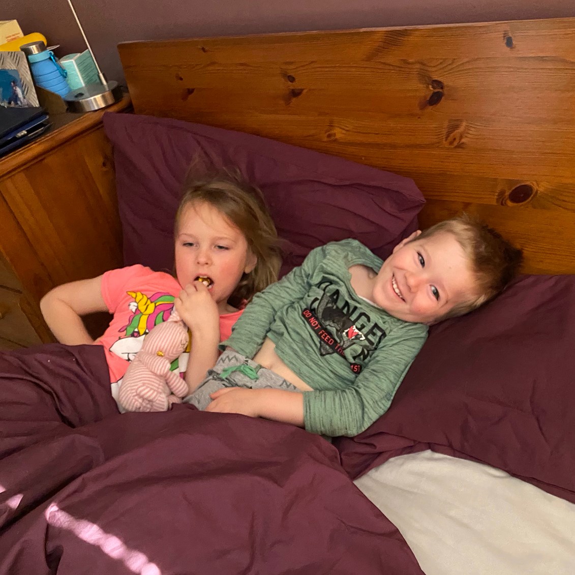 The day started with the kids joining me in bed. It was actually really lovely (mostly) and there was room for us all with Stephen sleeping downstairs. I feel we may need to consider a king size bed for the future to accommodate full-family cuddles. James kept playing with his willy (aren’t boys delightful) and then both kids tried to lick my face. Because why not. Apparently it’s hilarious – you should try it.