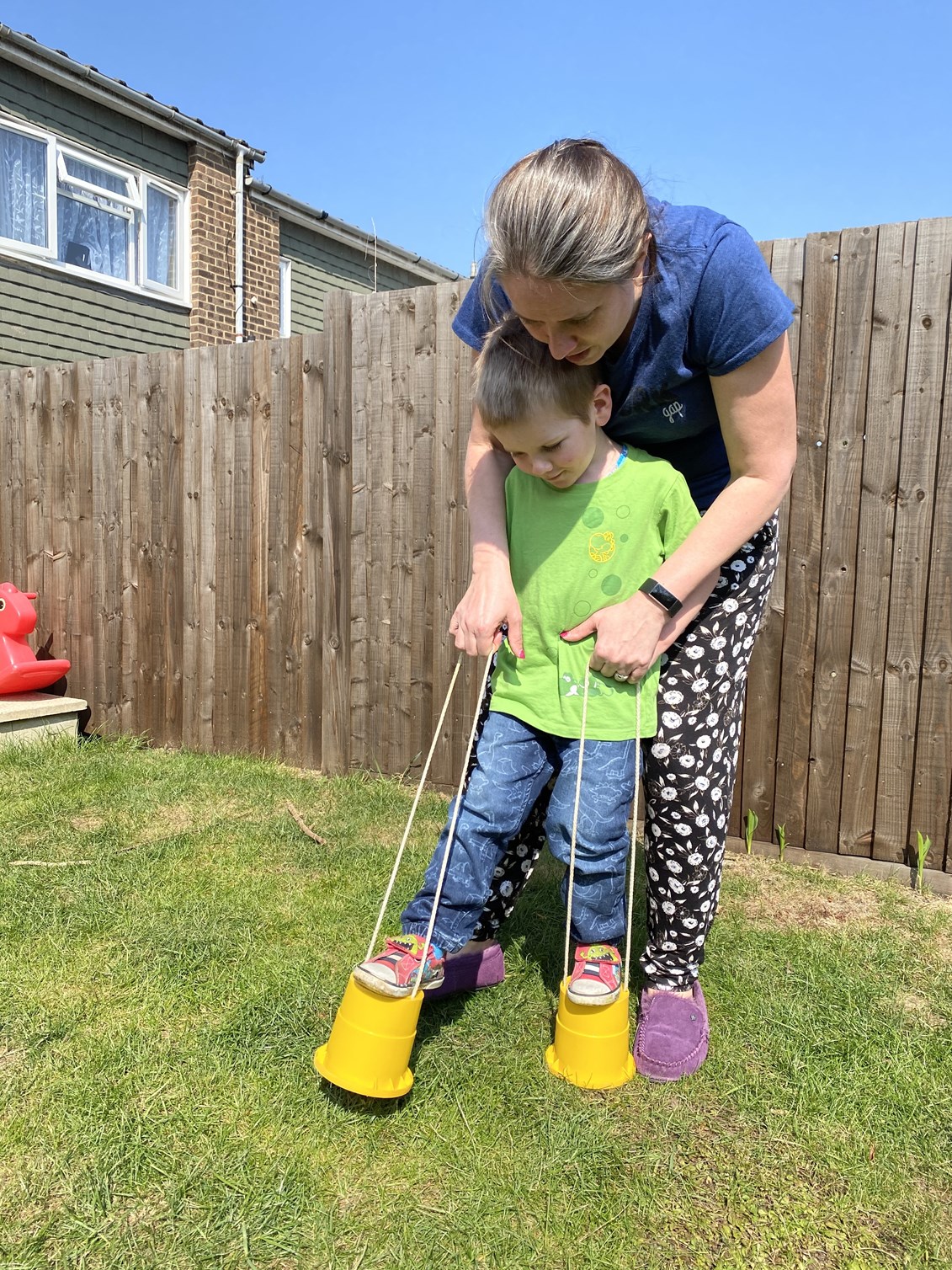 Once all the food was put away, we went into the garden to attempt some obstacle course challenges with all the awesome borrowed garden play stuff from Grandma Margaret combined with stuff we already had. Currently the slide and “boing rackets” are equally most popular!