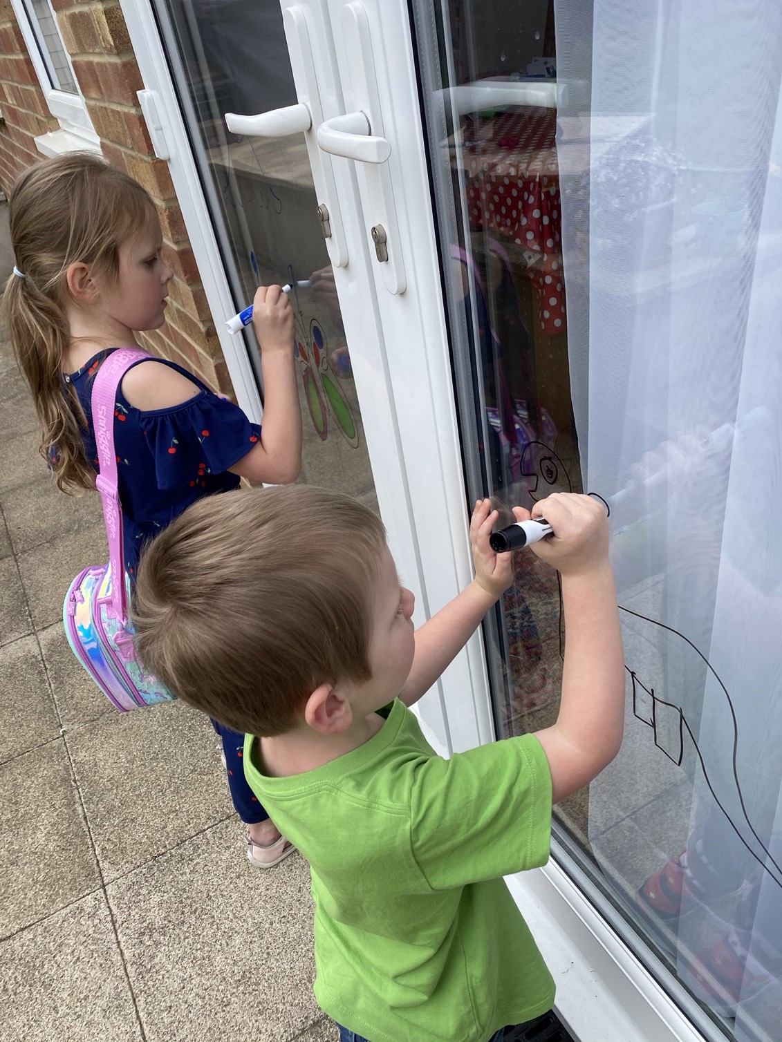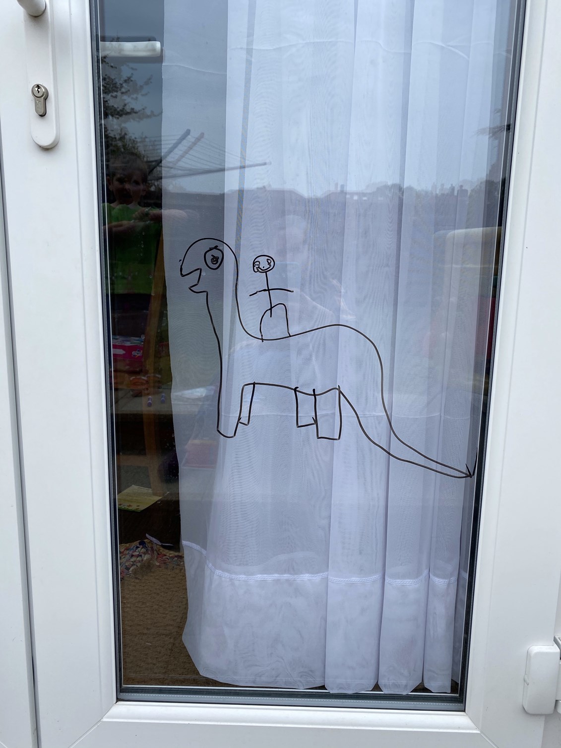 Last week I ordered some markers that would draw on glass and then rub off easily. Before the film afternoon we had some drawing fun on the patio doors. Sadly it didn’t last as long as I’d hoped but it did lead them to wanting to hide and find the painted rocks again. Anything to keep them occupied and quiet so Stephen could try to sleep and I could have some mental head-space.