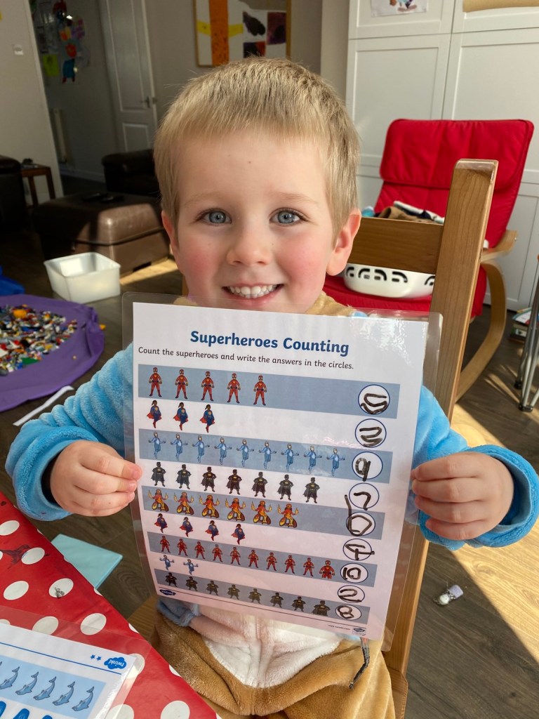 James, on the other hand, did some brilliant counting worksheets all by himself. He was very proud of his work.