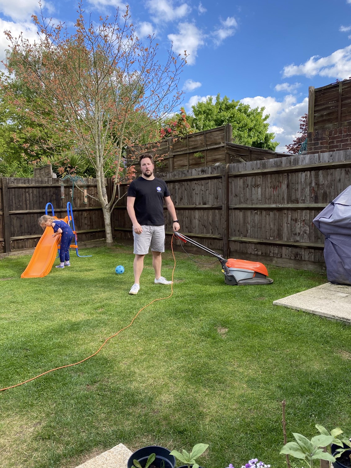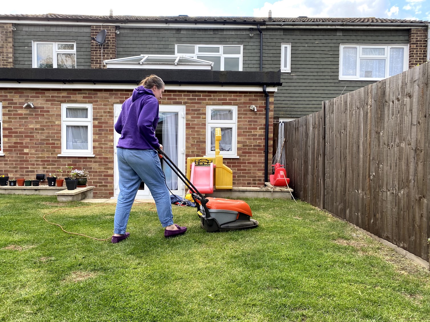 This however, did lead to Stephen deciding the lawn needed mowing again. I was inside sorting dinner when he got the mower out. But I was far for impressed with him when I discovered what he was doing. He’s still too wiped after small bits of exertion and this I knew would mean he would be broken tomorrow. So I stepped in and finished the last bits off. It turns out that mowing the garden is not so hard. Hurrah! Plus it meant I got to take some amusing photos of grumpy Stephen (who can never keep a straight face with me around).