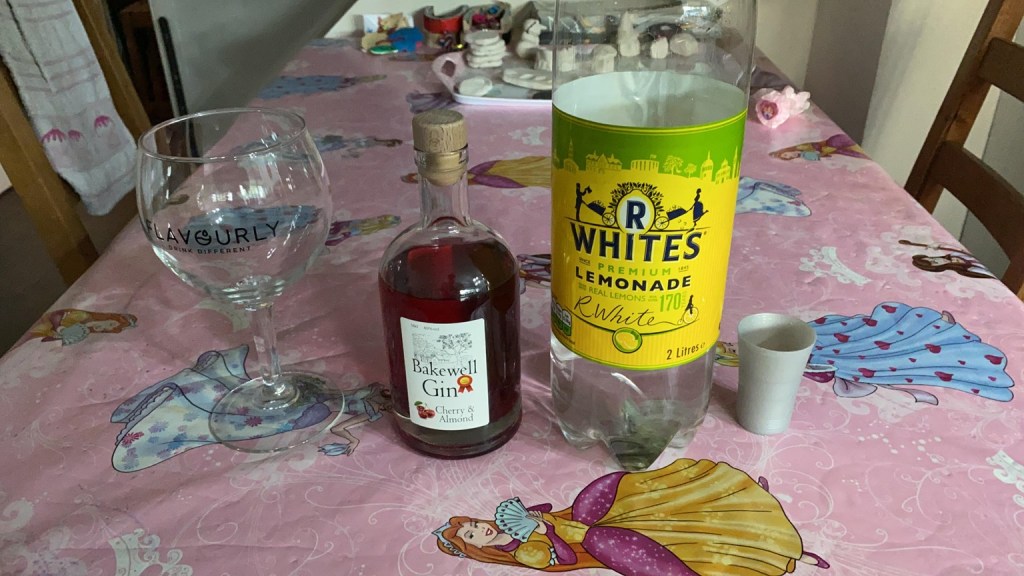 With the children in bed I decided I’d earned a drink. Bakewell tart gin with a lemonade mixer – perfection!
