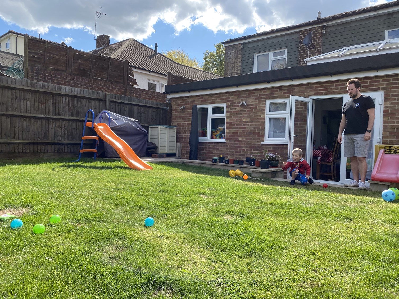 After lunch the kids watched a film while I snoozed in the chair. Stephen was having a much needed nap after his walk. Then we had some fun in the garden. James had requested playing “baddonk”, his version of garden bowls. Lots of fun, although Genevieve and I preferred to spectate and paint our nails.