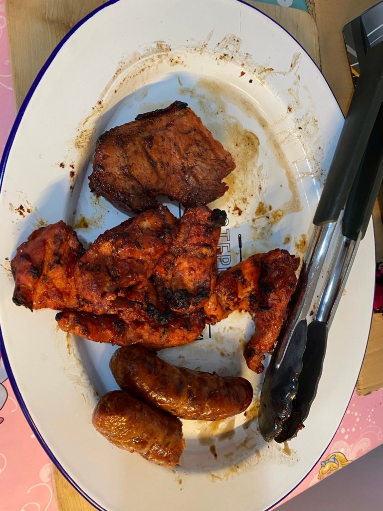 Dinner was almost a disaster as Stephen didn’t put enough charcoal on the BBQ. By his own admission, he had messed up how much he needed. Frankly this is a clear indication that he’s still broken as BBQ is normally his speciality!