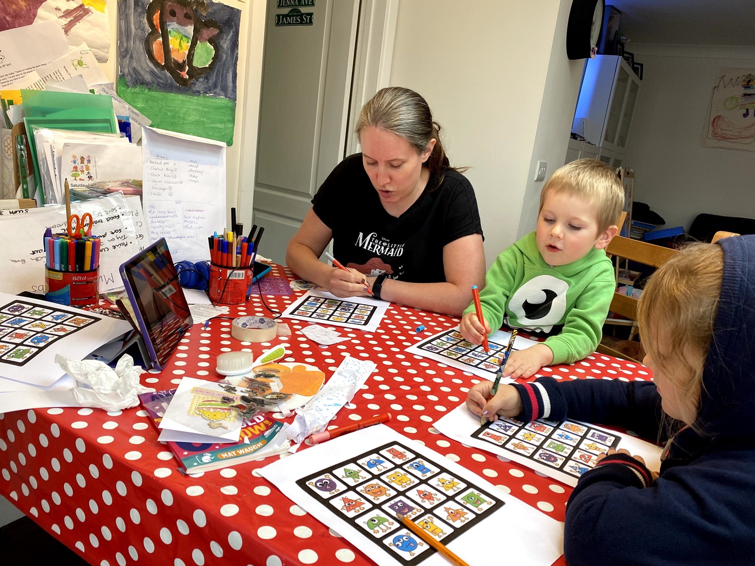 It was soon time for BBQ lighting and bingo chat time with Grandma Lindsey and Grandad Lawrie. James got bingo first but Genevieve had the first line. They really love bingo day and it’s such a nice thing for us all to do together. They’ve even grasped the idea of there only being one winner – amazing!