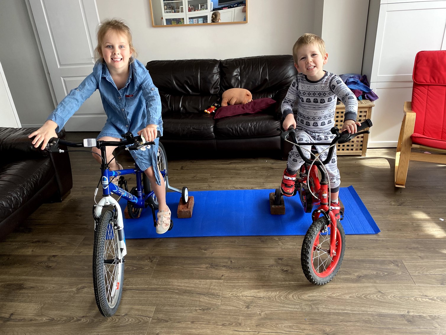While I was out, Stephen had got the kids on their bikes in the living room to practise the balance and peddling motions they need to be able master to ride outside. He was a genius if you ask me. The kids loved it and hopefully it will help when we can get back outside with them when Stephen is recovered.