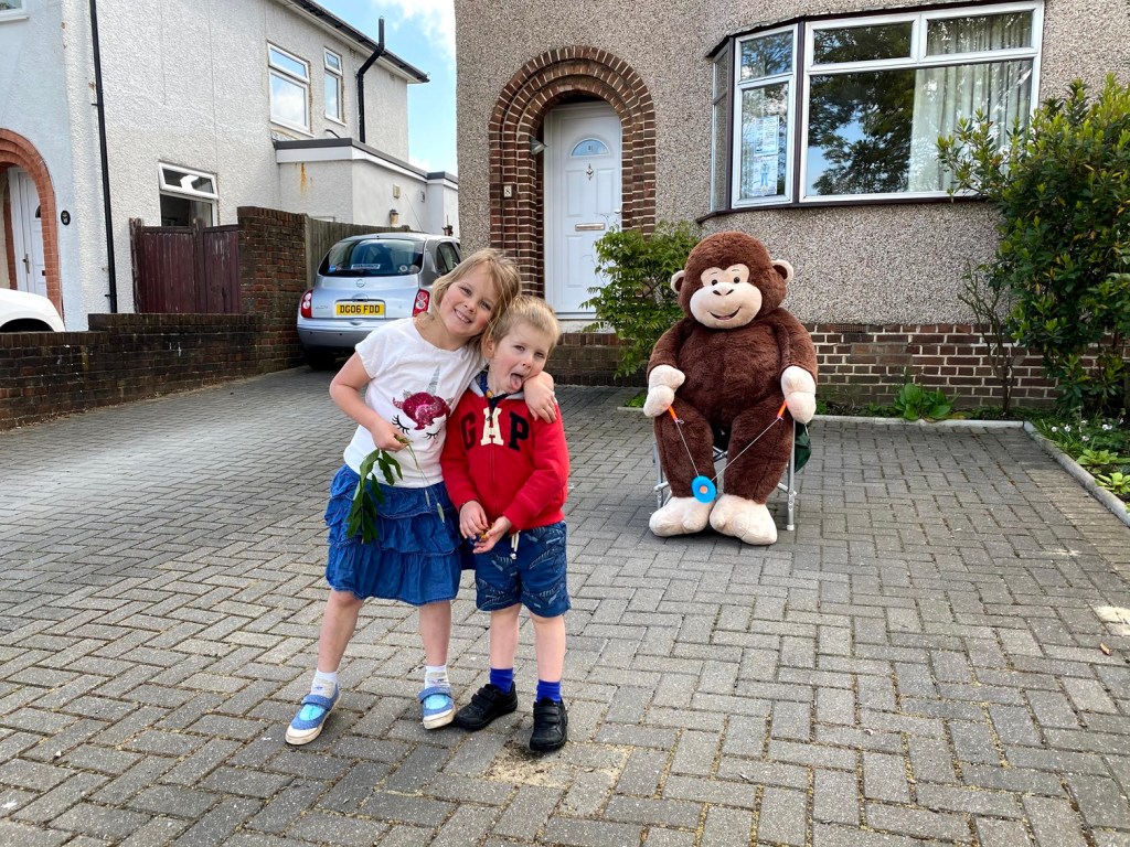 They seemed to have a great time though. They blew dandelions, made Egyptian shape in front of a pyramid hedge, saw the neighbourhood monkey playing with a diabolo and (apparently) waved at every single person they walked past.