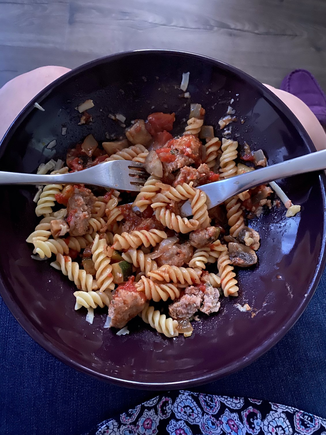 I cooked a delicious sausage pasta for dinner for me and Stephen with leftover Welsh Dragon sausages from the butchers. I was supposed to have cooked slow-cooked chilli with the beef I remembered to get out of the freezer and defrost, but then I forgot to cook it in time. The sausage pasta was epic though and will be repeated as it was so yum!