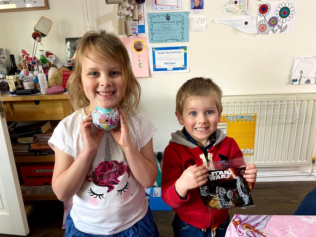 Today’s letter from Grandma Lindsey and Grandad Lawrie contained a couple of unicorn tiger things that the kids instantly adored. However, I was worried about arguments about whose was whose, but luckily Genevieve insisted I chopped off her one’s keyring. Hurray for small blessings!