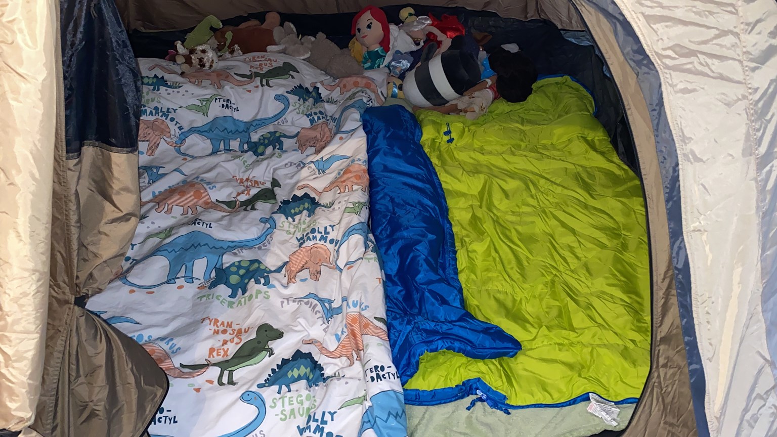 We combined the camping with a mini-cinema experience. The children watched Star Wars: Episode VII – The Force Awakens from inside the tent. They were very happy munching popcorn while wrapped up in their sleeping bags.