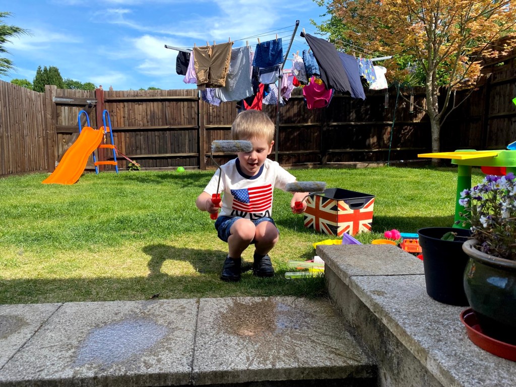 While the kids were happily playing, I went over to my friend Gemma’s garden to have socially distanced drinks with her and our other friend Kerry. I entered the already open back gate and stayed at least two metres away from them both the whole time. Brilliant!