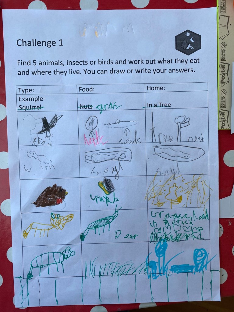 When we got home, Genevieve completed her animals challenge for Beavers. Stephen found her “wirm” particularly charming.