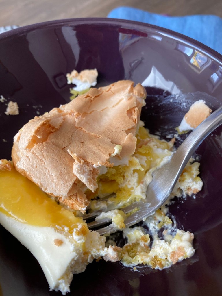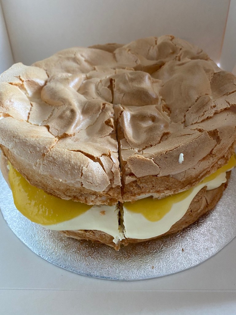 The nearby NHS pop-up shop was running a cake auction that ended today. I couldn’t resist bidding on a lemon meringue cake and, to my delight, I managed to win it. Epic!