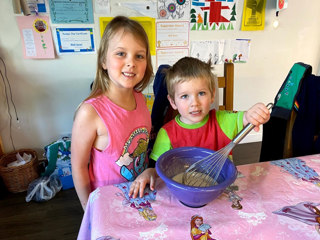 The kids made pancakes with Stephen again this morning. The mix was quite lumpy (until Stephen sorted it) and flour ended up all over the table, but they had a great time cooking with Daddy. I feel sorry for families who only have pancakes on Shrove Tuesday – they’re seriously missing out!