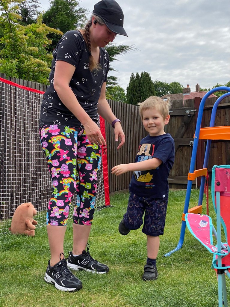 Stephen had set up our new football net in the garden while I was out running. Genevieve and James had great fun kicking balls, dribbling around bean bags and scoring goals. They’ve both got a mean kick on them, although their aim needs some serious work.