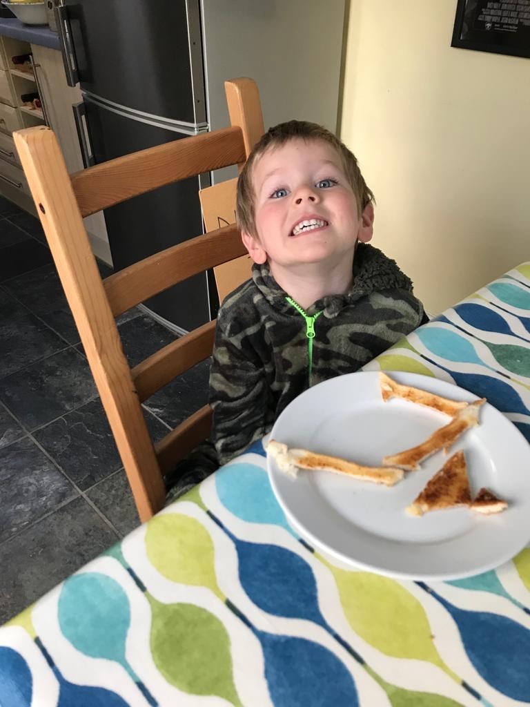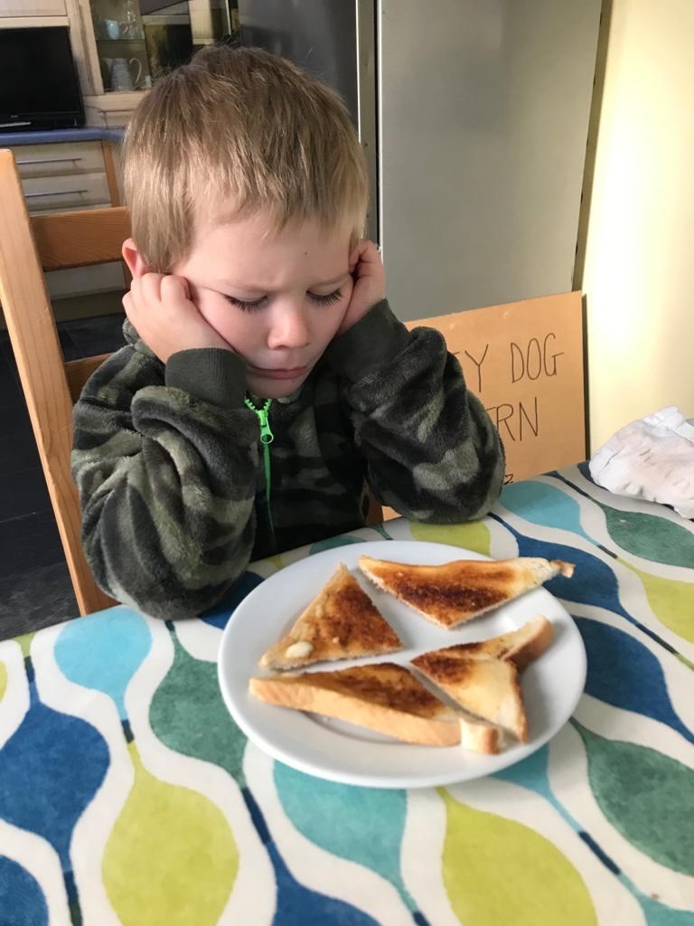 Stephen and I were very amused to get a breakfast toast message from Grandma Lindsey in the morning. James had apparently requested rollercoaster toast and was heartily disappointed by his boring triangles. But, Grandma being so wonderful did a great job with her second attempt! I just hope James said thank you!