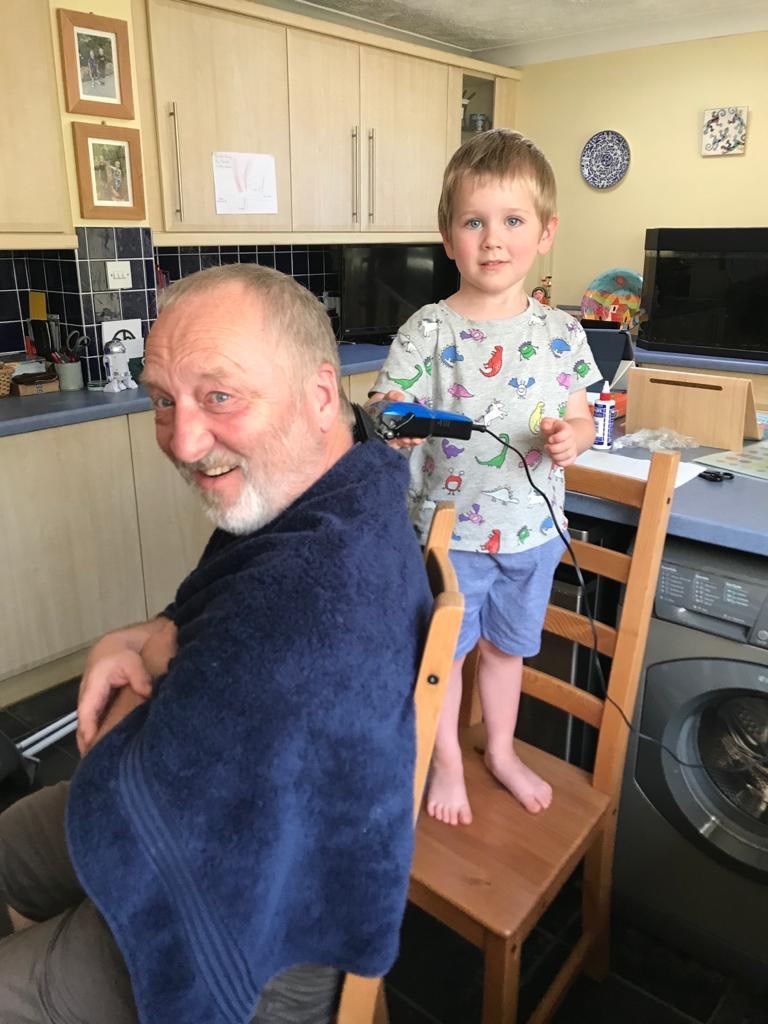 It was then decided that Grandad needed a haircut so, following some instructions from Grandma, the children took it in turns to set about Grandad’s hair with hair clippers and without a care in the world. Genevieve announced the result as brilliant; James was less impressed. Grandad declared the experience as interesting!