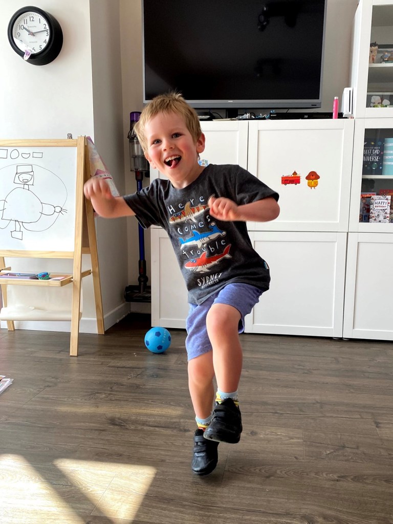 When he wasn’t finding the edge pieces and quizzing Daddy about dinosaurs, James was keen to show off his hopping skills. He’s really good at it!