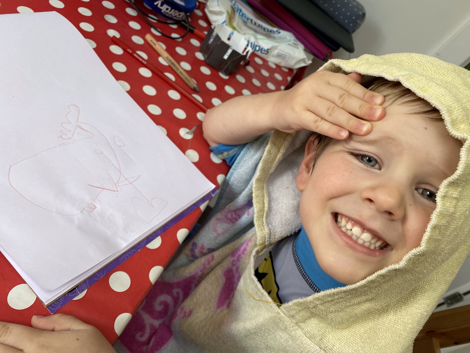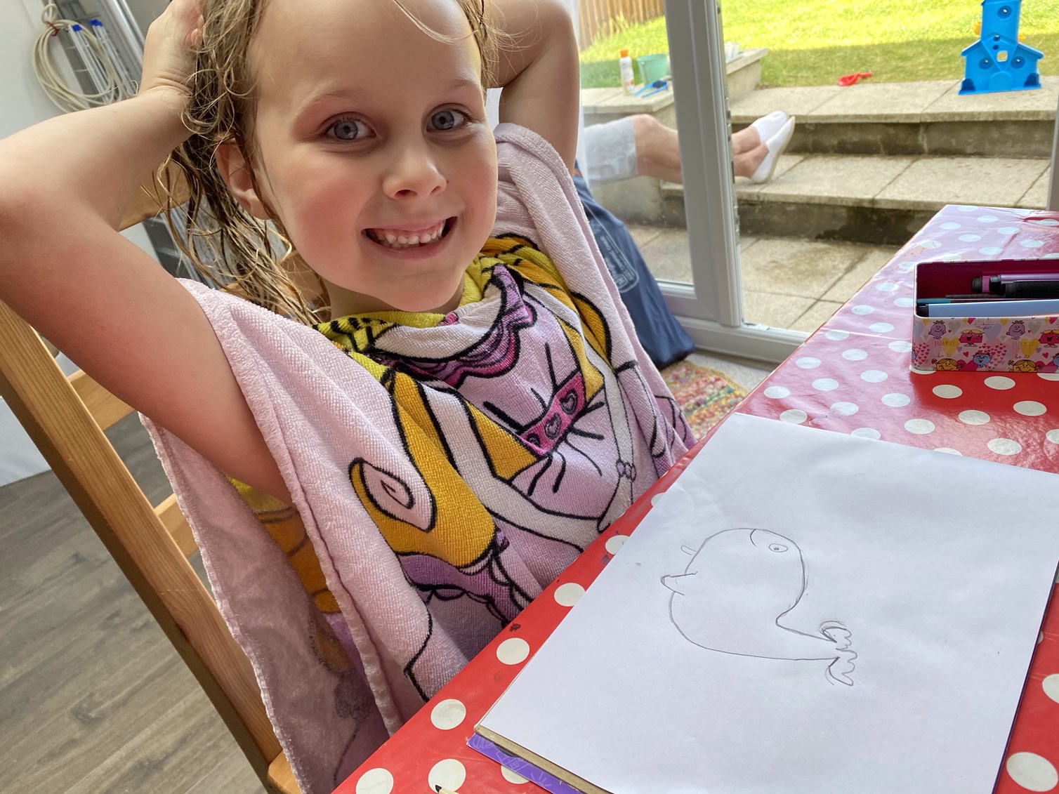I might have been a bit crazy but mid-sprinkler fun I stopped the kids and got them sat at the table for the World record attempt at biggest art lesson with #drawwithrob. We have been loving some online drawing tutorials by a children’s illustrator Rob Biddulph and today he was going to try to teach the biggest online art lesson ever! From one art teacher to another, I couldn’t not participate.