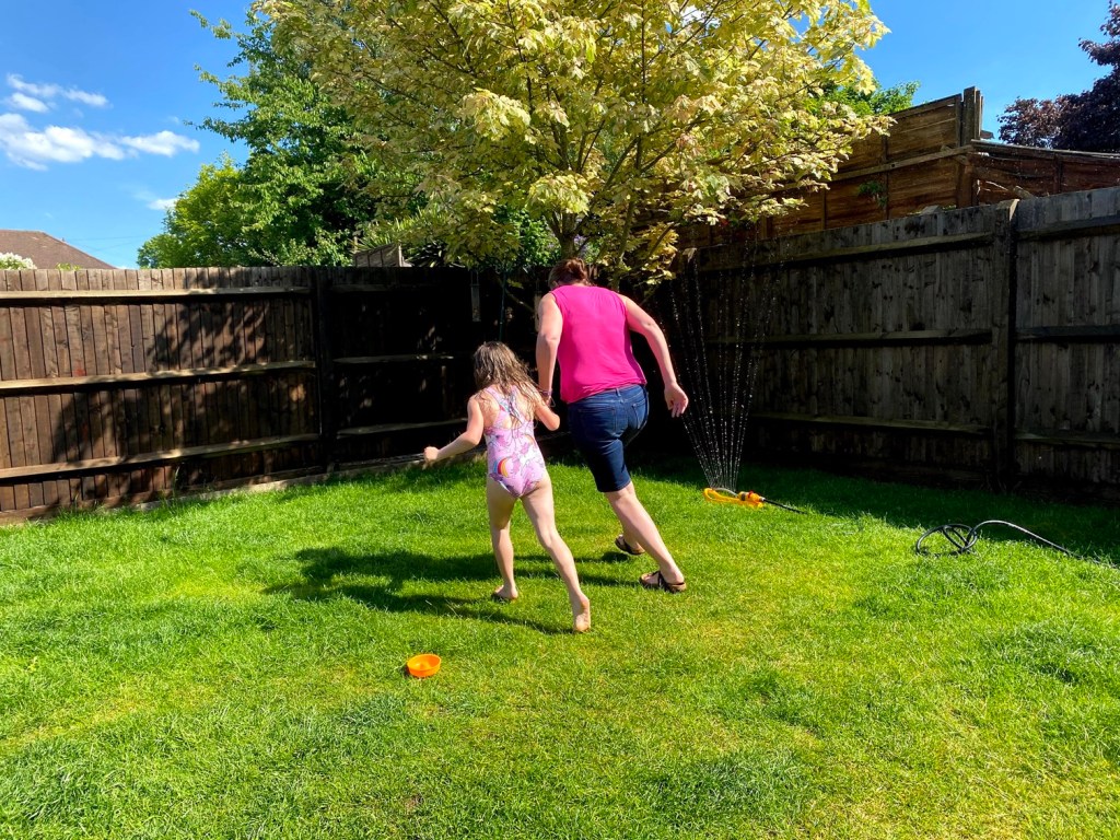 While we were out walking, Stephen had got the hose out. Cue Sprinkler fun in the garden! The kids loved it and I even joined in for a bit. They thought that was hilarious.