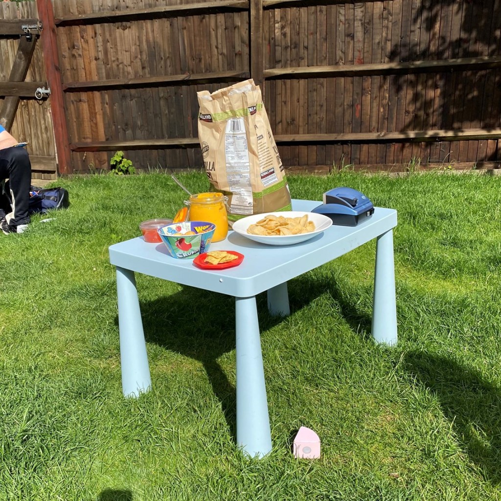 To make sure everyone was able to enjoy the treats, we had to set up a “no man’s land” in the middle of the garden for the goodies. Unusual times call for unusual solutions!