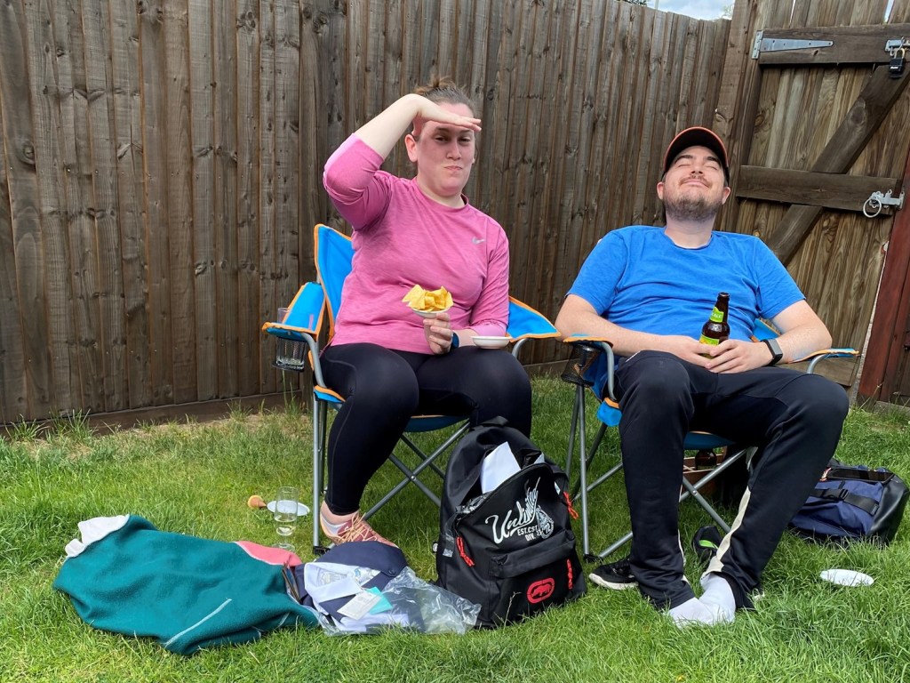 When Stephen woke up, Auntie Daisy and Uncle Ben arrived for some socially distanced drinking in the garden. They came in through the back gate – we took the distancing very seriously. It was so nice to see them and just felt like a really normal thing to do. The only difference being the social distancing and not being able to hug, of course.
