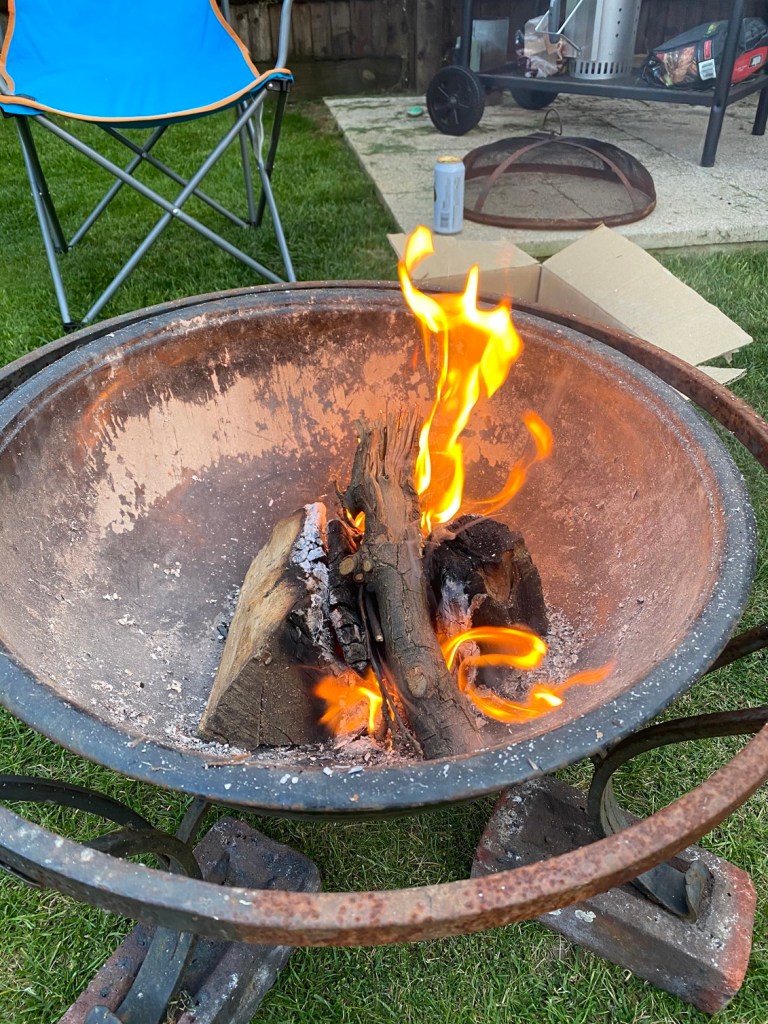 The BBQ was good, but the best bit, after the kids were in bed, was that Stephen had secretly transferred the coals to the fire pit so we could have a cuddle outside next to a fire. It was so lovely sitting around the fire pit just chatting, toasting marshmallows and enjoying a drink together. Bliss.
