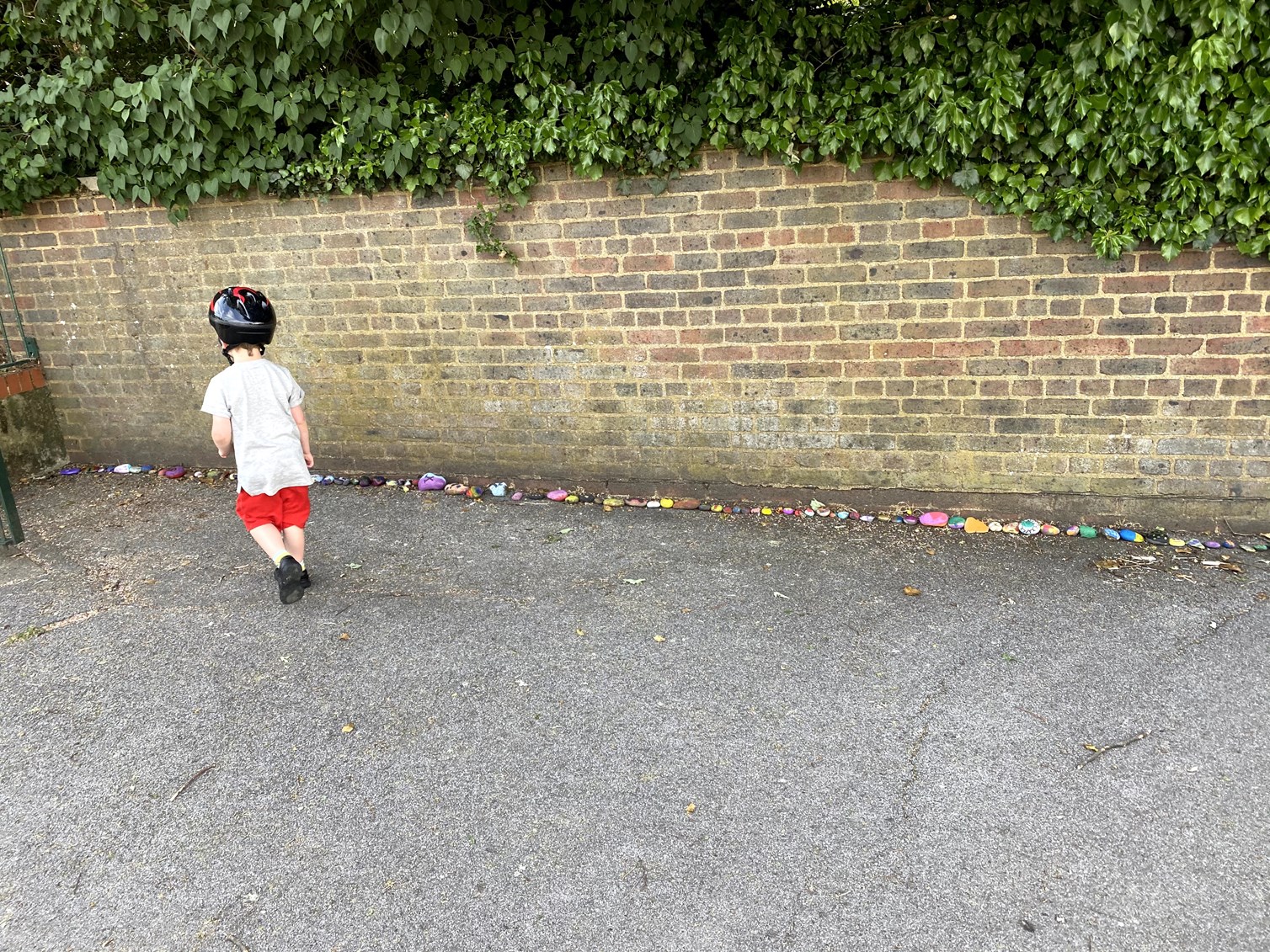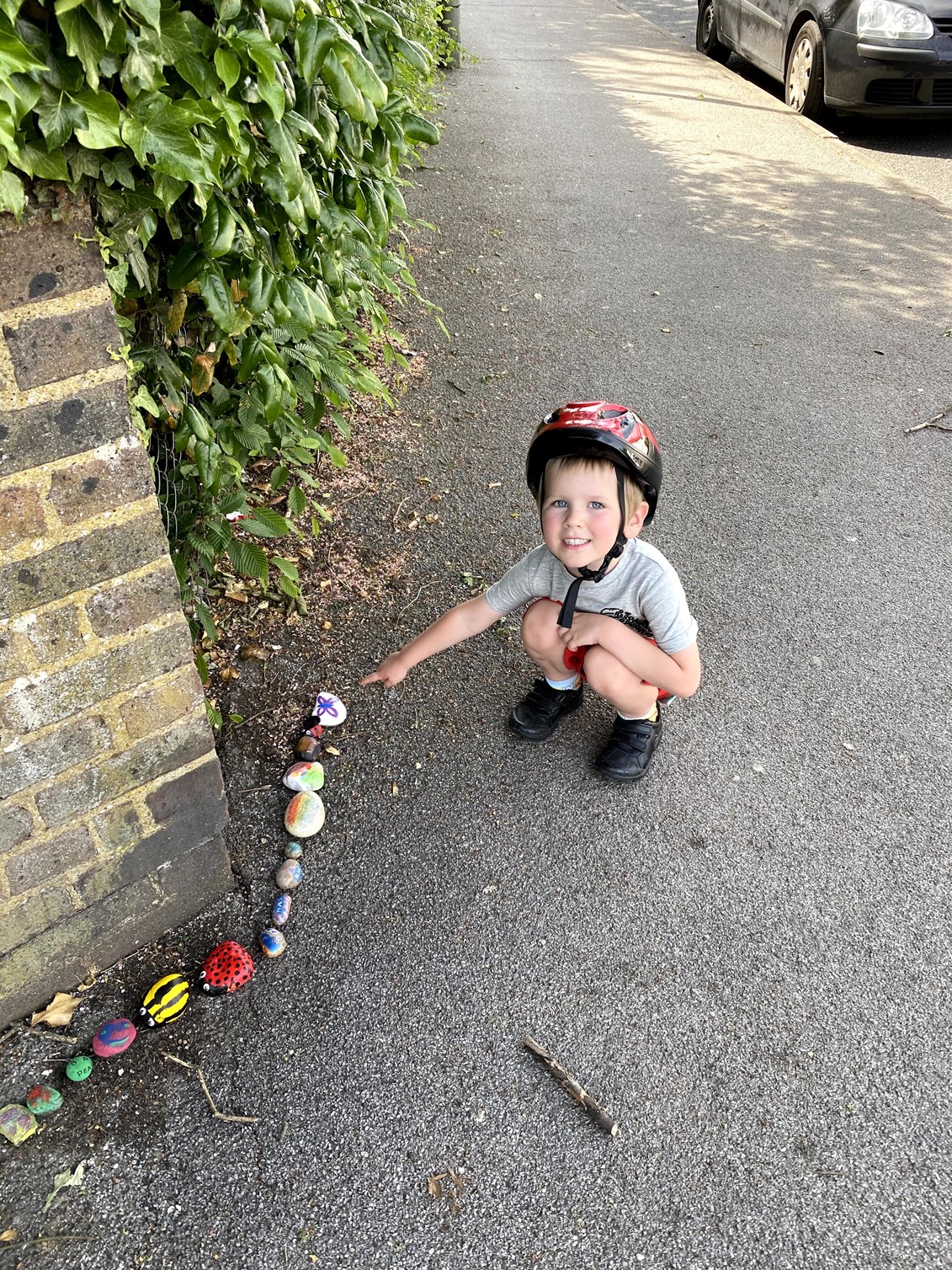After lunch, James and I went on a walk to add a painted rock in the Crofton school rock snake. It’s such a lovely idea – a long, snaking trail of children’s painted rocks just outside the school. Genevieve was in a funny mood and point-blank refused to come.