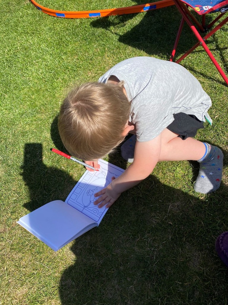 Stephen had another nap in the afternoon so the kids and I went in the garden to do some drawing. The kids were so engaged with their drawing that I actually managed to get the outline pictures done for some cards I need to send to family friends. Result!