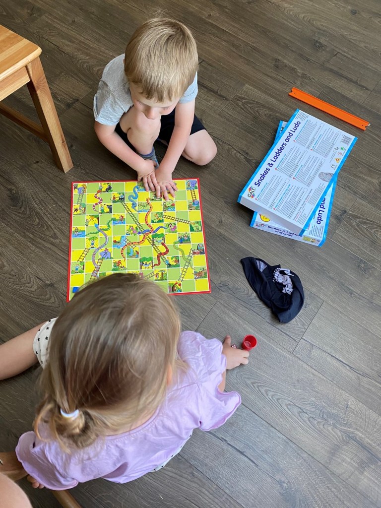 Once they were done with their drawing, the kids played a very cheat-filled game of Snakes and Ladders together. Genevieve guided James through the numbers he needed, but James was appalled at the level of cheating she was stooping too (despite it also meaning that he went up way more ladders than he should have). Grandma Lindsey quite rightly points out that we should be impressed with the maths skills Genevieve is displaying, but I’m still not sure it outweighs the cheating.