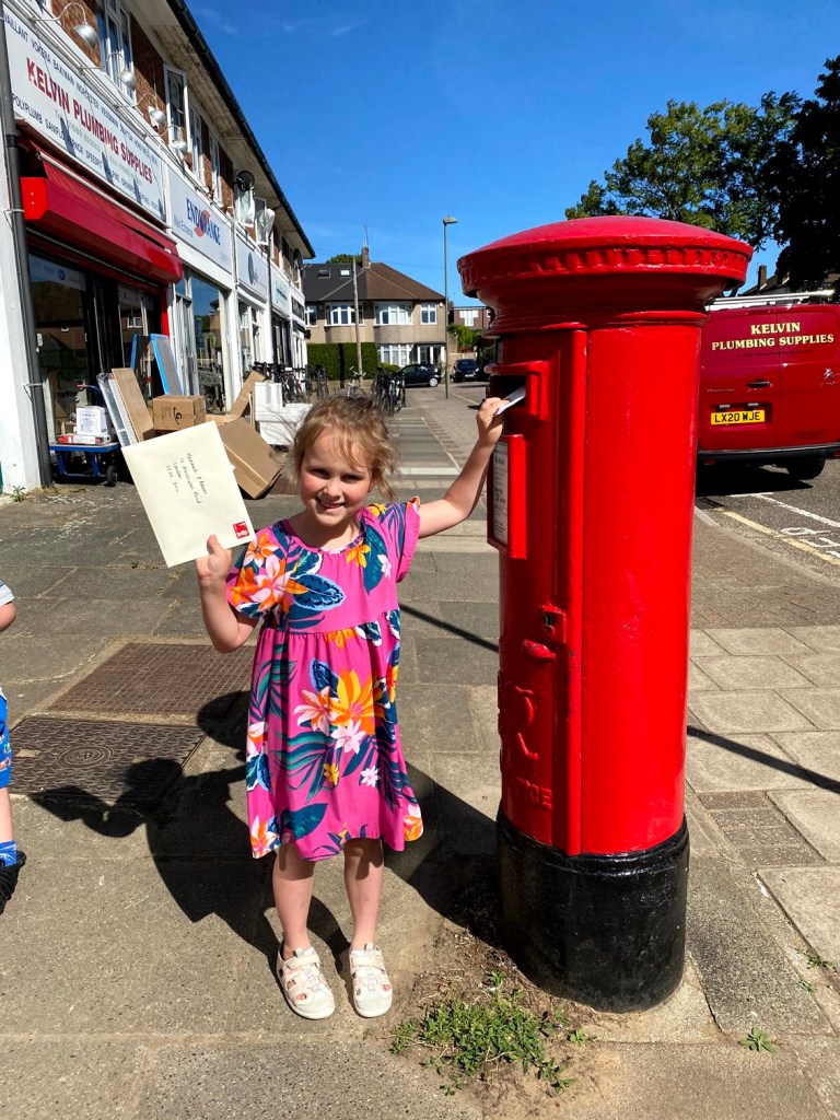 Next we posted some important letters including the cards I’d made for the Lodges. Luckily the kids had two letters to post each (otherwise there would have been an almighty argument).