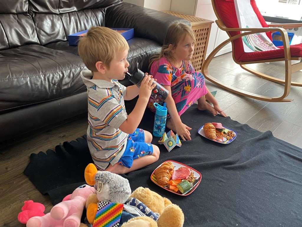 Stephen wasn’t feeling great today so went upstairs for a good, long sleep while we had a picnic lunch. Despite putting down a blanket the kids still managed to get crumbs everywhere. I’m so happy we bought a new vacuum cleaner just before lockdown – it’s been so useful!
