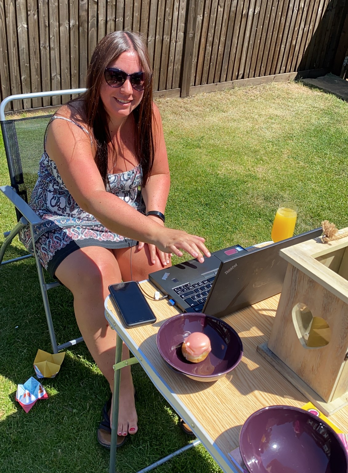 Today we had a “wedding” to attend. Some good friends of ours were supposed to be married today, but due to the dreaded COVID they have had to postpone until next year. But they marked the day with a beautiful Zoom “cerephony”. It was led by one of the friends who is a civil servant and included a handfasting (ribbon tying) ceremony. Our friend Gemma even came and sat in our garden to drink prosecco (and orange juice) with me. I know it was a wedding, but it was 11am which is way too early for me to start full-on daytime drinking.