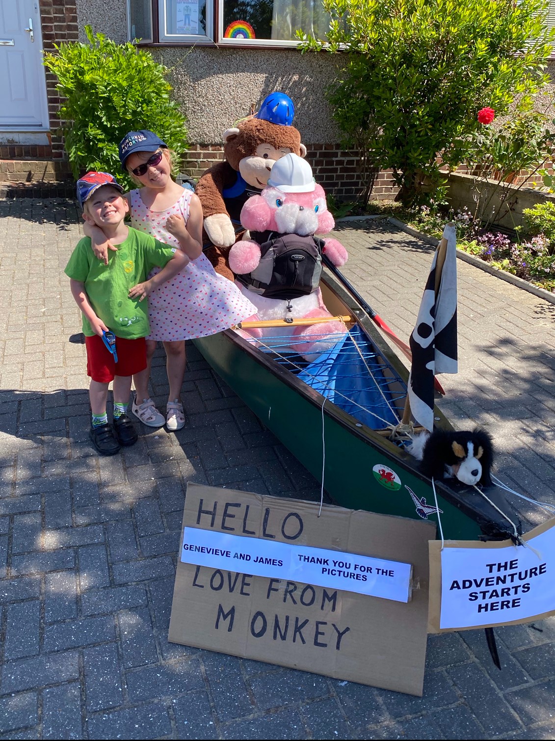 Once the wedding had finished we said goodbye to Gemma and ate lunch. Then we went to see the friendly neighbourhood monkey who had a surprise for the children today. They were super excited to see that not only was he in a boat with a Jolly Roger pirate flag, but he had also written a thank you note to Genevieve and James for their posters. So cute!