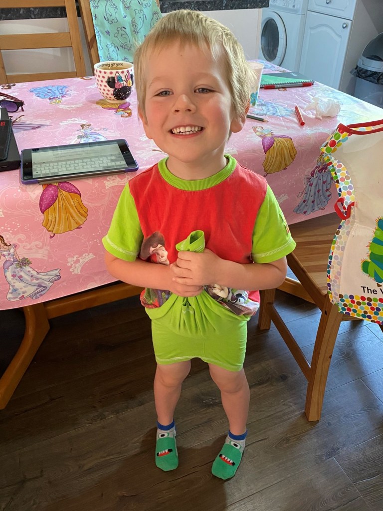 At one point in the morning, James had been to the toilet and managed to get both of his legs stuck in the same leg hole of his pyjama bottoms. Very entertaining.