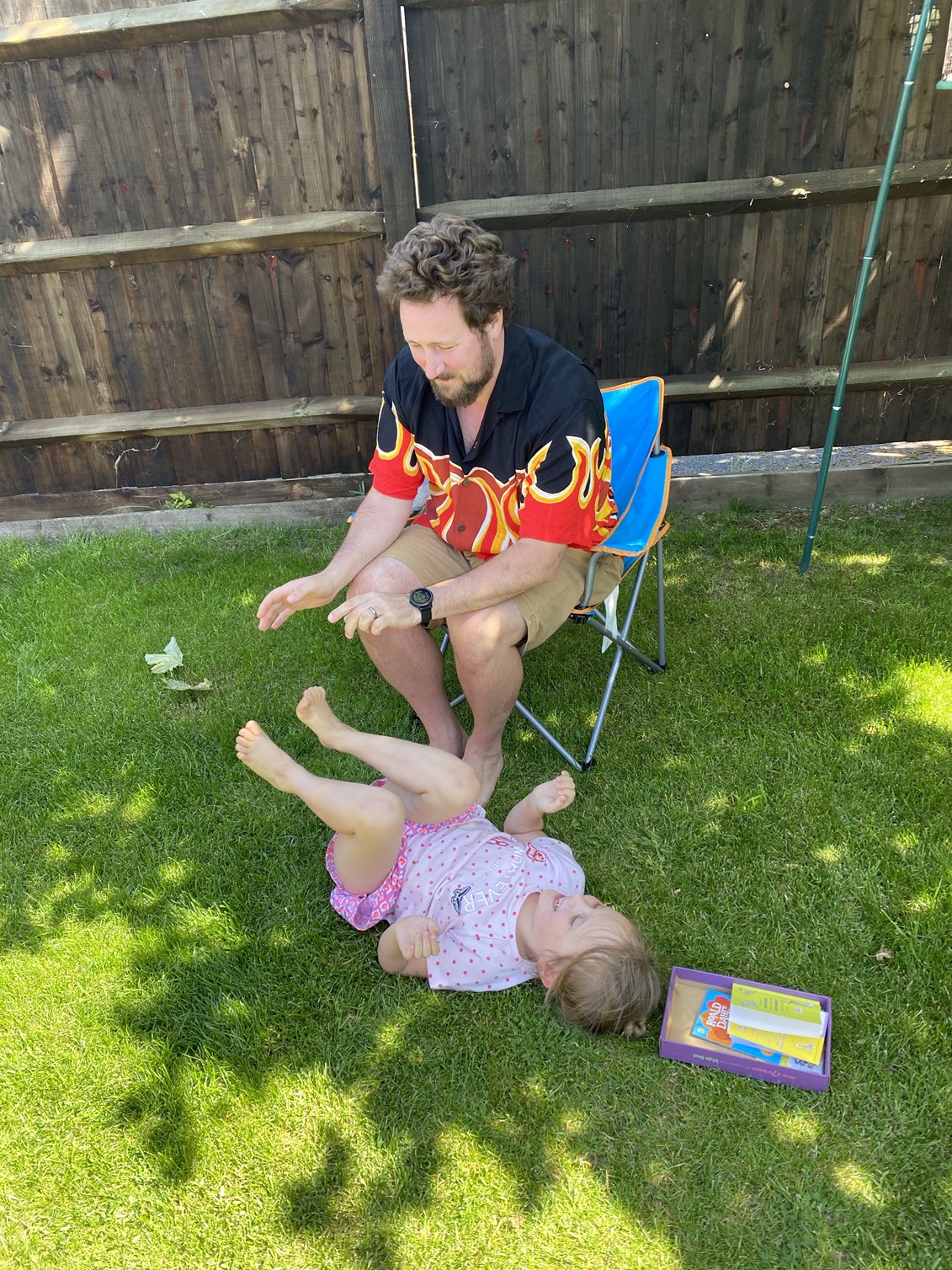 Stephen was able to join us in the garden to chill out for lots of the day which was so nice. He even managed a tickle fight with Genevieve. He won, but I don’t think Genevieve minded – she was just happy to be playing with Daddy.