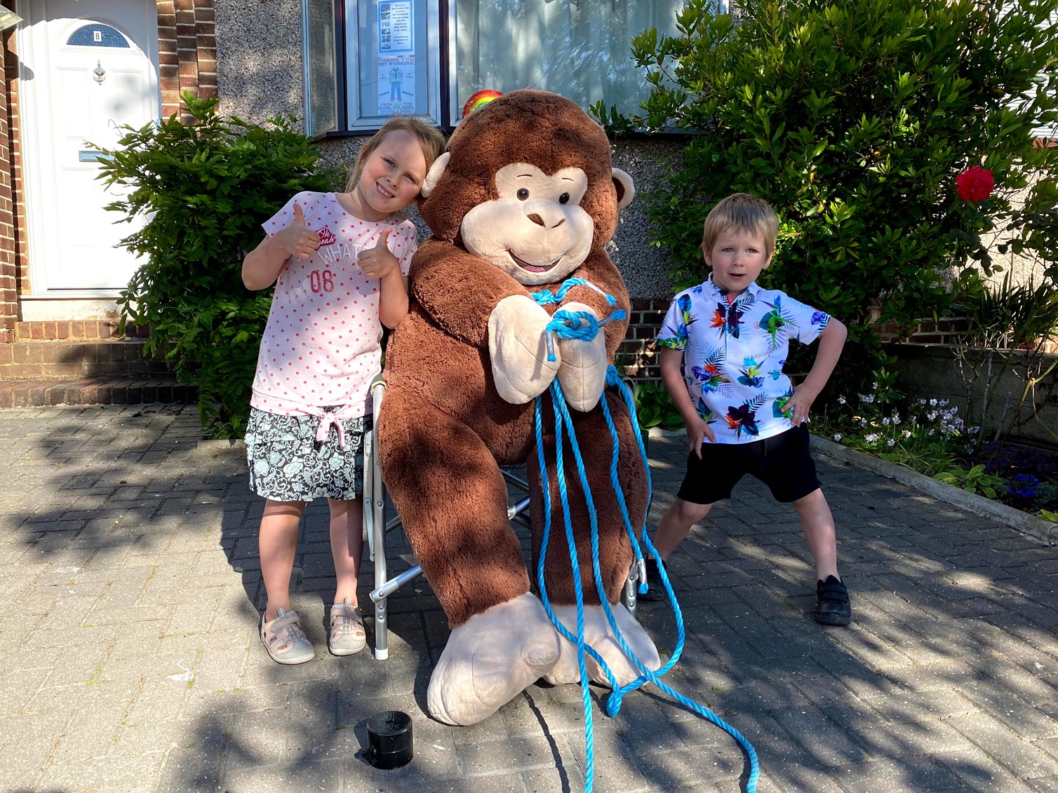 While I was cooking, Stephen took the kids up to see the friendly neighbourhood monkey. Today he was tying knots which is lucky as Genevieve needs to learn how to do a reef knot for Beavers.
