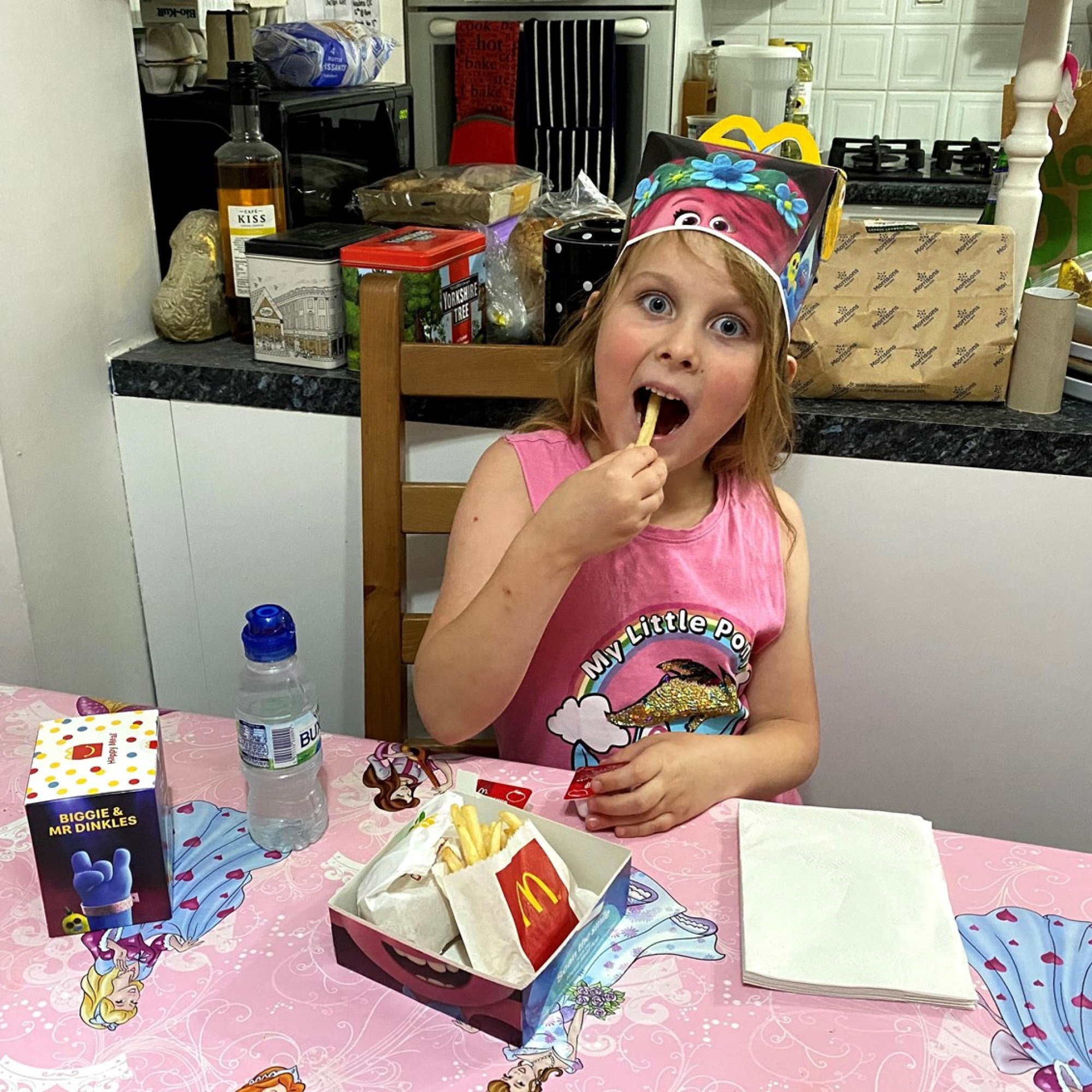 Stephen kept me updated as he waited to order the kids’ McDonalds. Apparently the whole carpark has been turned into a massive drive-through queue but he was slowly making progress. After nearly an hour he arrived home triumphant with dinner clutched in hand. The children’s eyes nearly popped out of their heads – the treat was very welcomed and the kids wolfed it down.