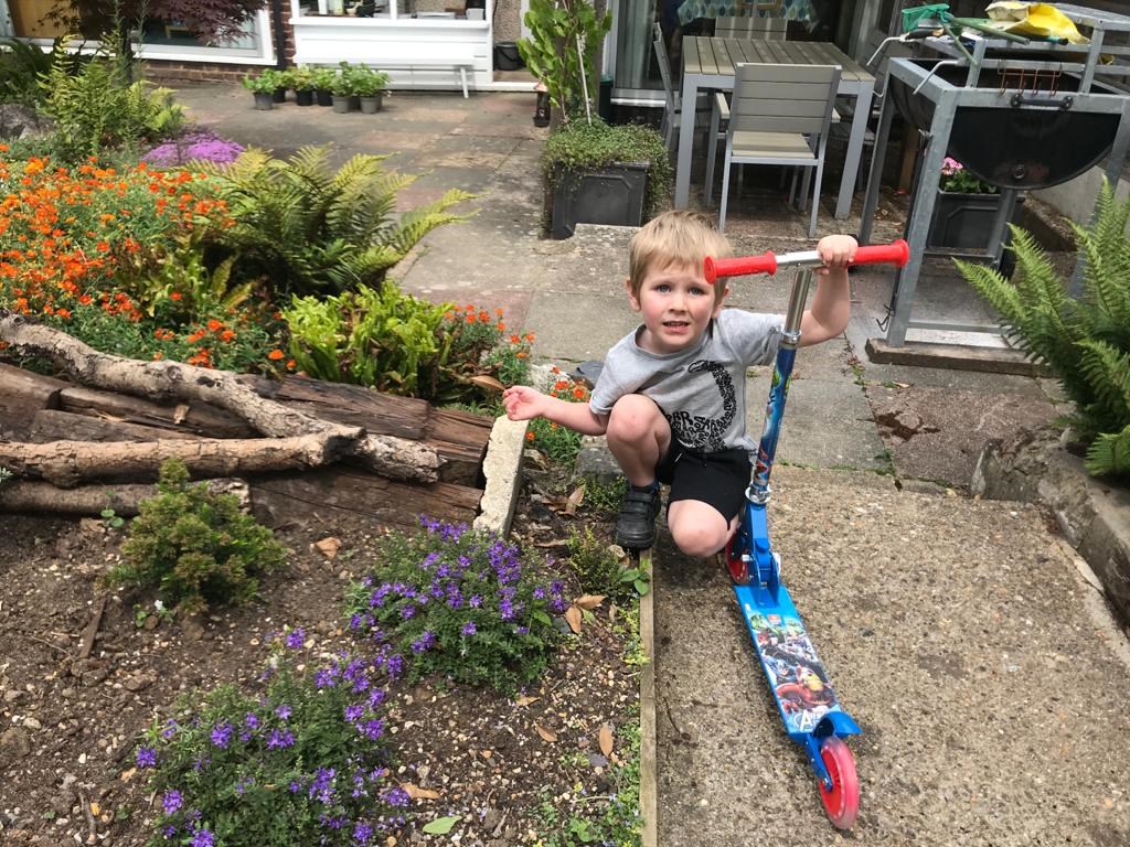 After lunch Genevieve and James went for a quick whizz around the garden on their scooters.