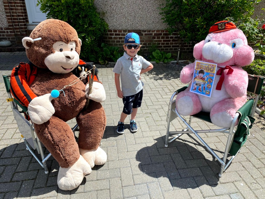 Once Stephen had re-emerged, I had a quick shower and then went for a walk to pick up some pirate books I had bought on FaceBook. James came with me so we stopped to see the friendly neighbourhood monkey. Stephen was gutted to discover that he’d missed out on a Beano themed tableau today.